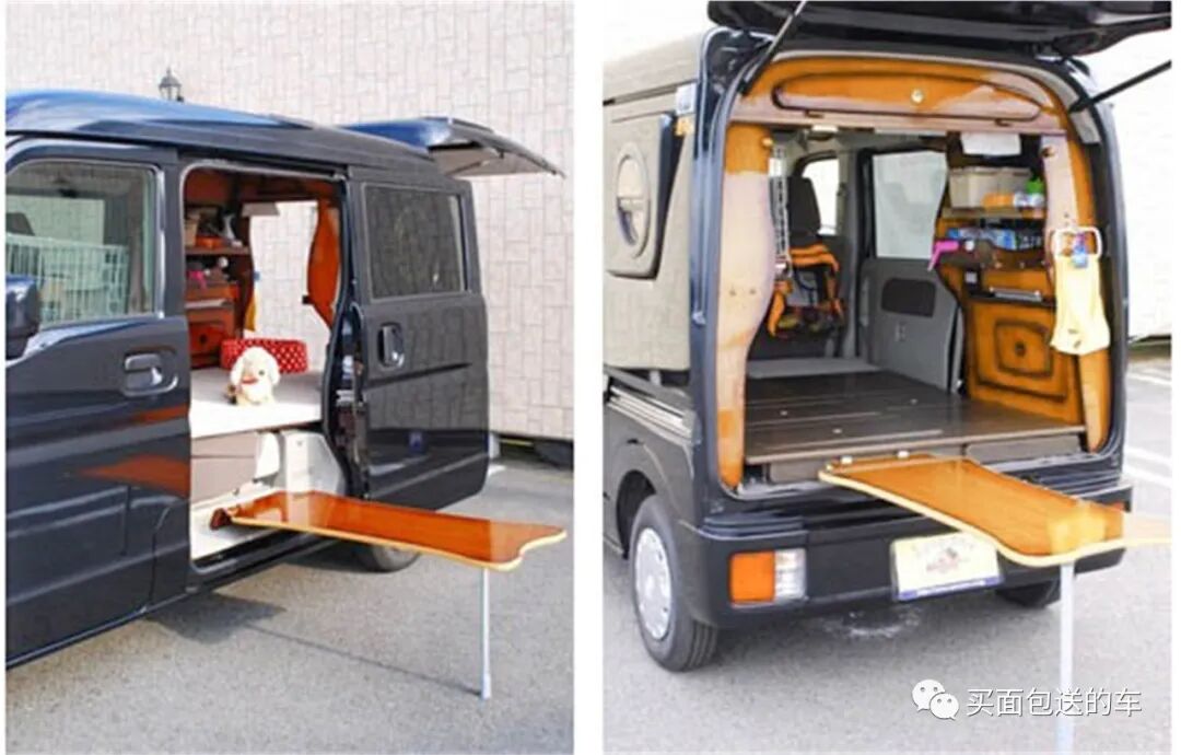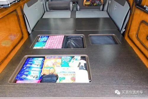 在侧开门和尾门位置可以拓展安装的折叠桌板。