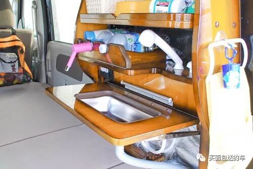 主驾驶侧多功能柜的人员专用折叠洗手台。