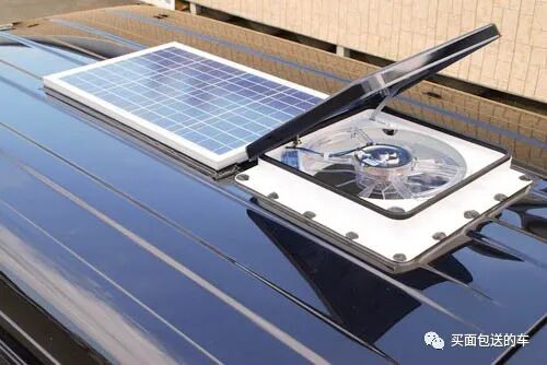 车顶加装的排气扇和30W的太阳能电池板,狗狗的皮肤没有汗腺,比起人体在车内是更怕高温的。