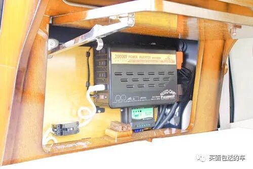 隐藏在副驾驶侧组合柜体内的2000W的逆变器和太阳能发电控制器。