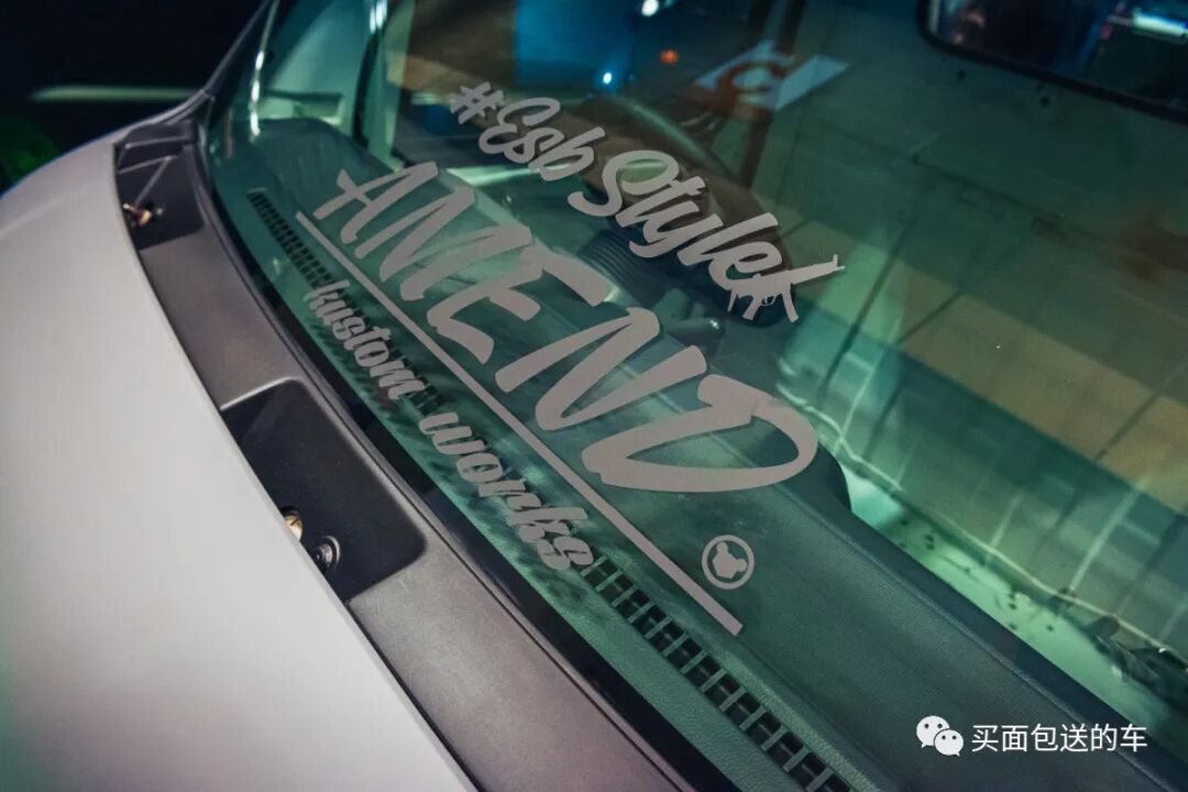 车头玻璃窗的AMEND CUSTOM WORKS工作室标识。