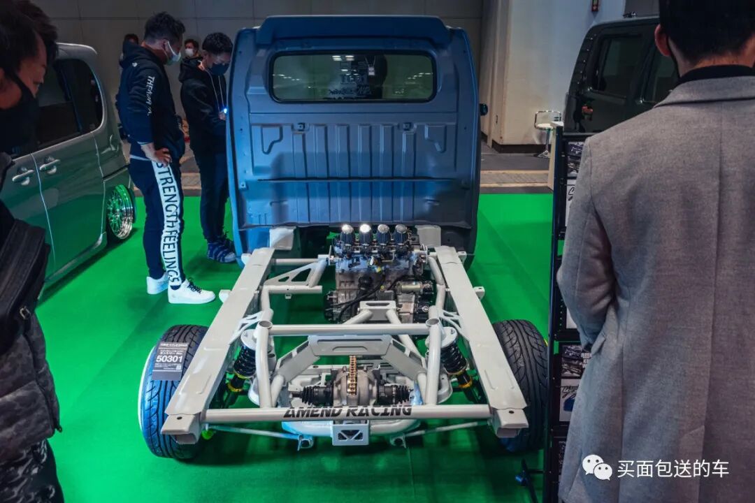 AMEND CUSTOM WORKS工作室在大阪车展上,展出用于场地漂移比赛的铃木Carry轻卡“AMEND FIGHTER”,这款铃木Carry轻卡的底盘上移植了一台1.3升四冲程铃木隼鸟发动机。