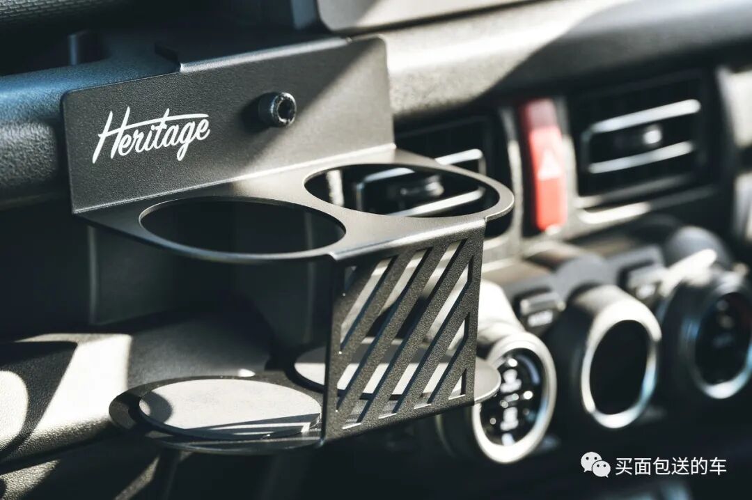 在仪表台上增设的Heritage 主题全金属饮料架。