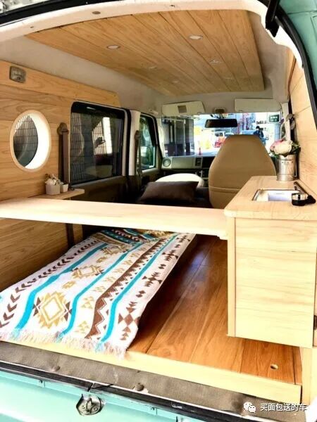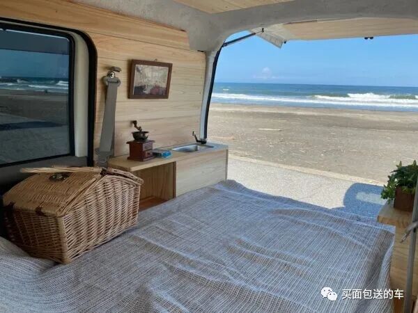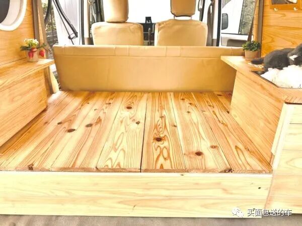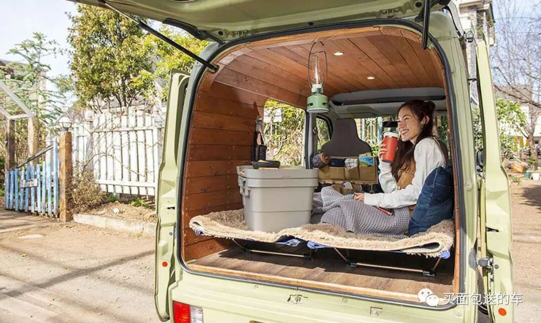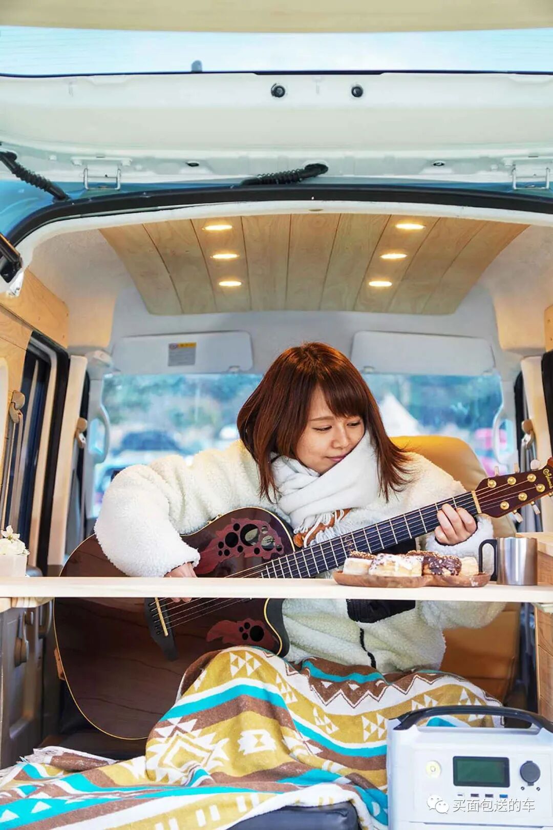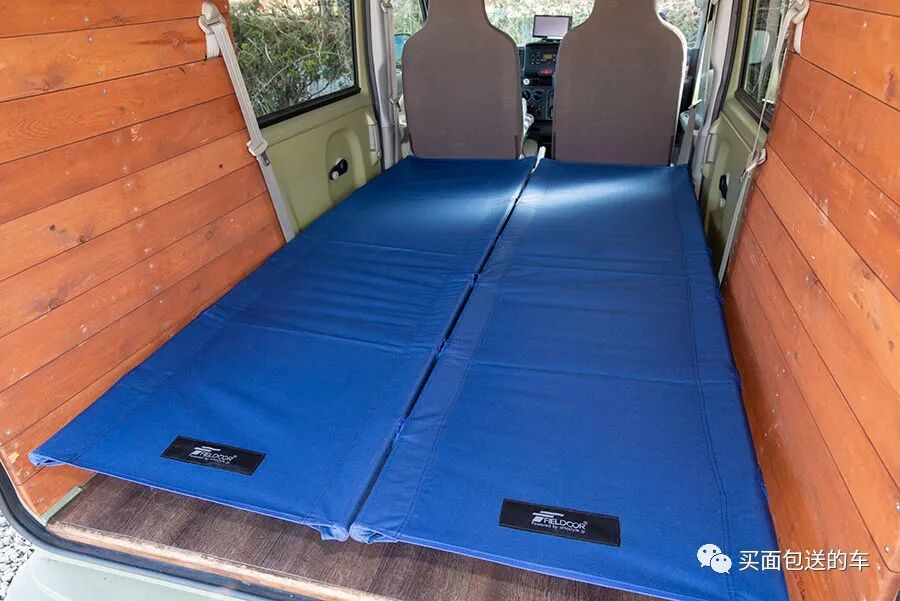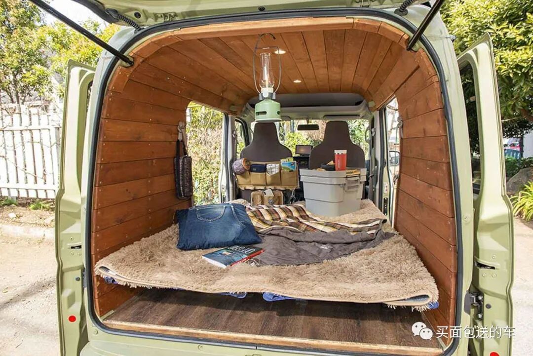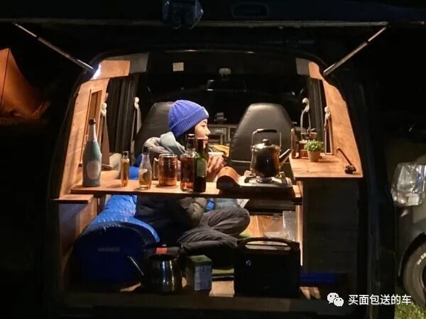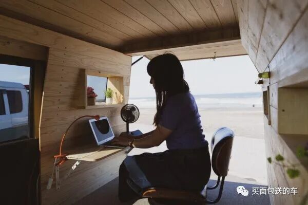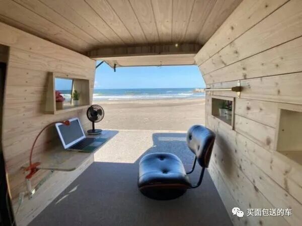在后面的改装方案中,加装了折叠桌板和简易的家具,打开尾门就是开放式办公室。