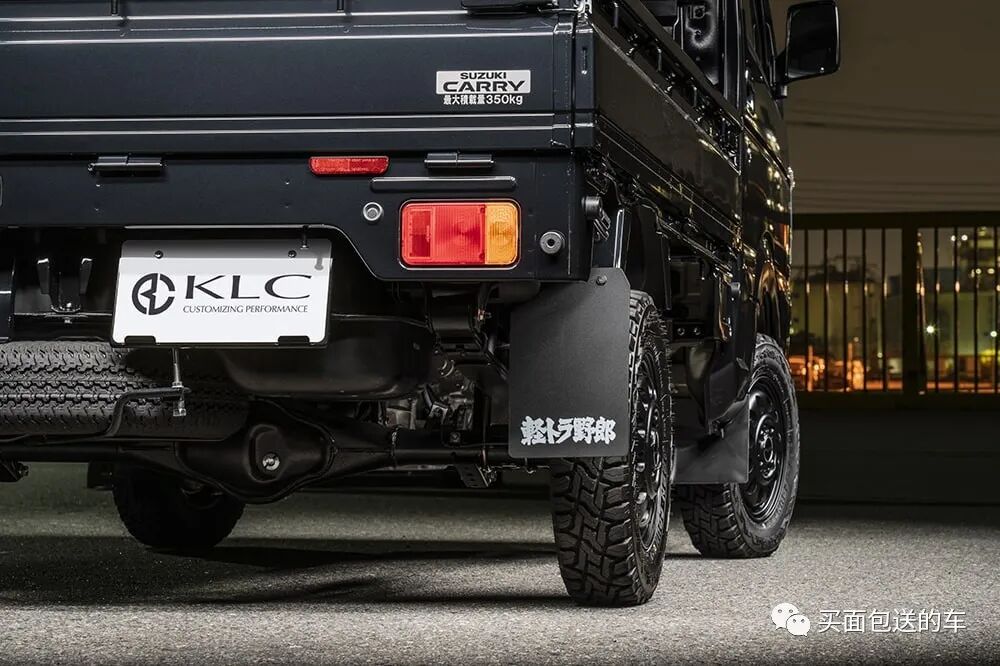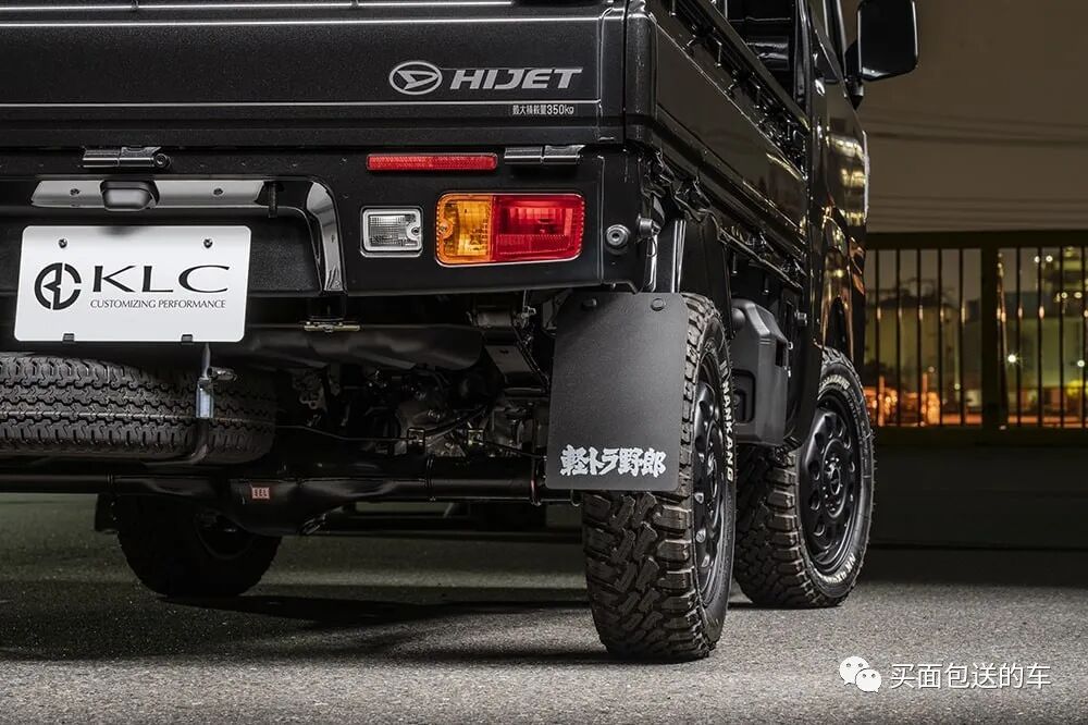 本改装案例的铃木CARRY 和大发HIJET,用关节增高垫和加长弹簧使得底盘升高5英寸,电瓶和油箱加装了保护外壳,并配合KLC招牌的复古轮毂。