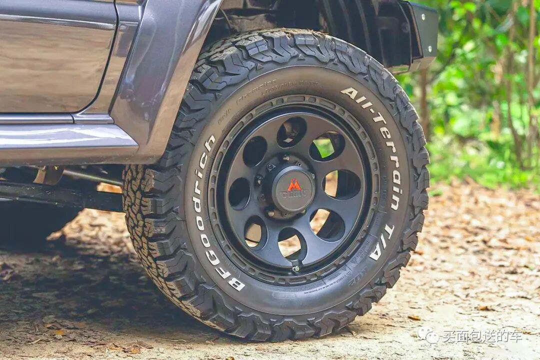 整车地盘做了3英寸的升高,配合235/70-16的AT轮胎。