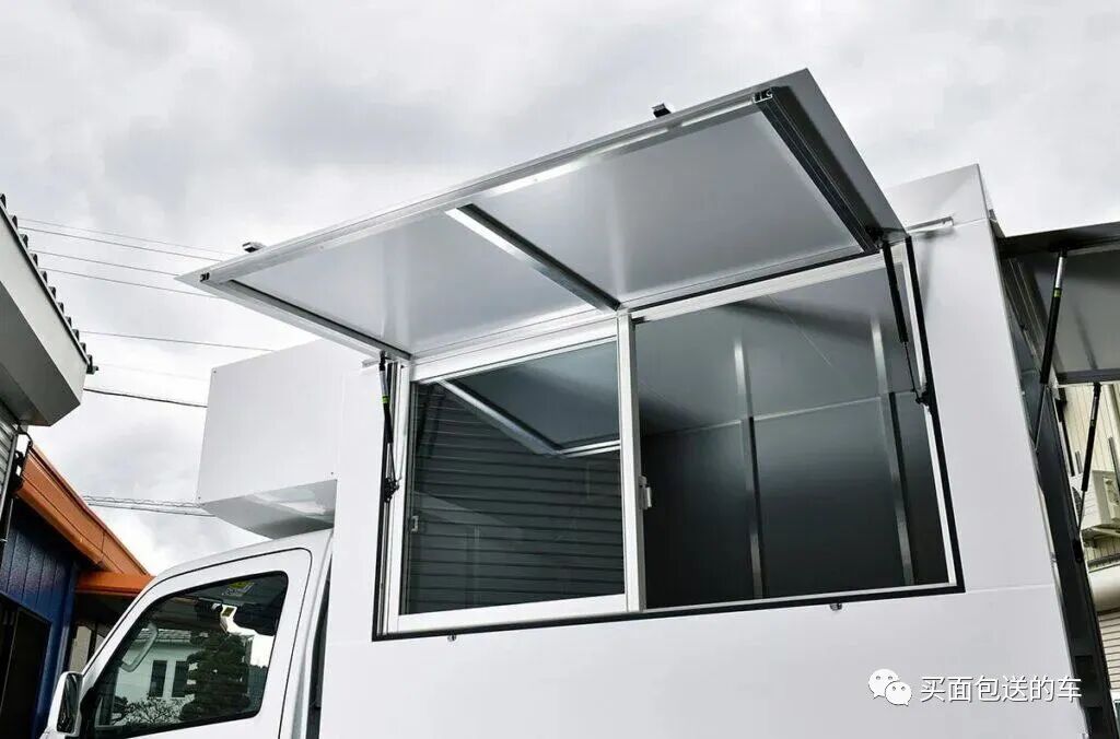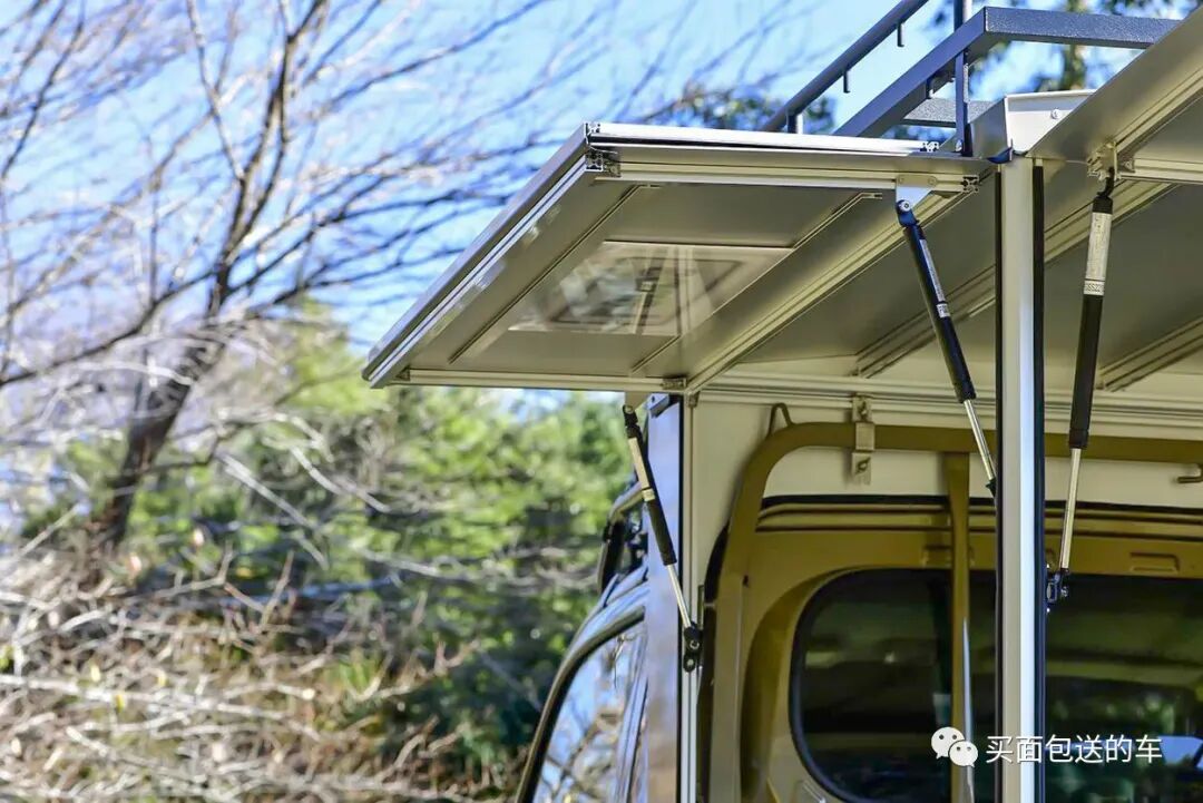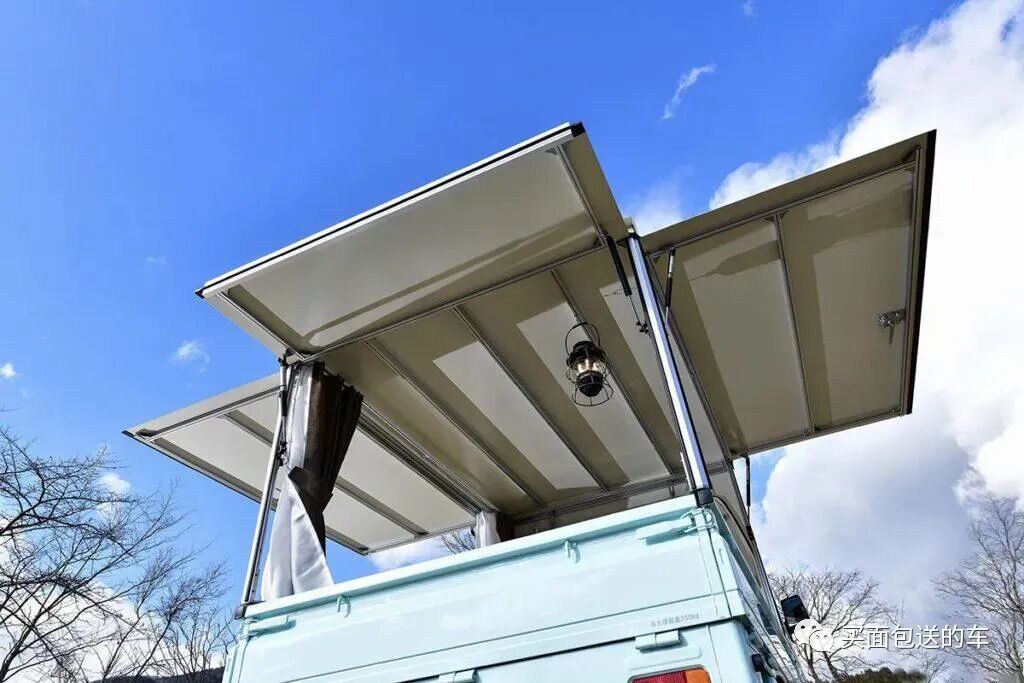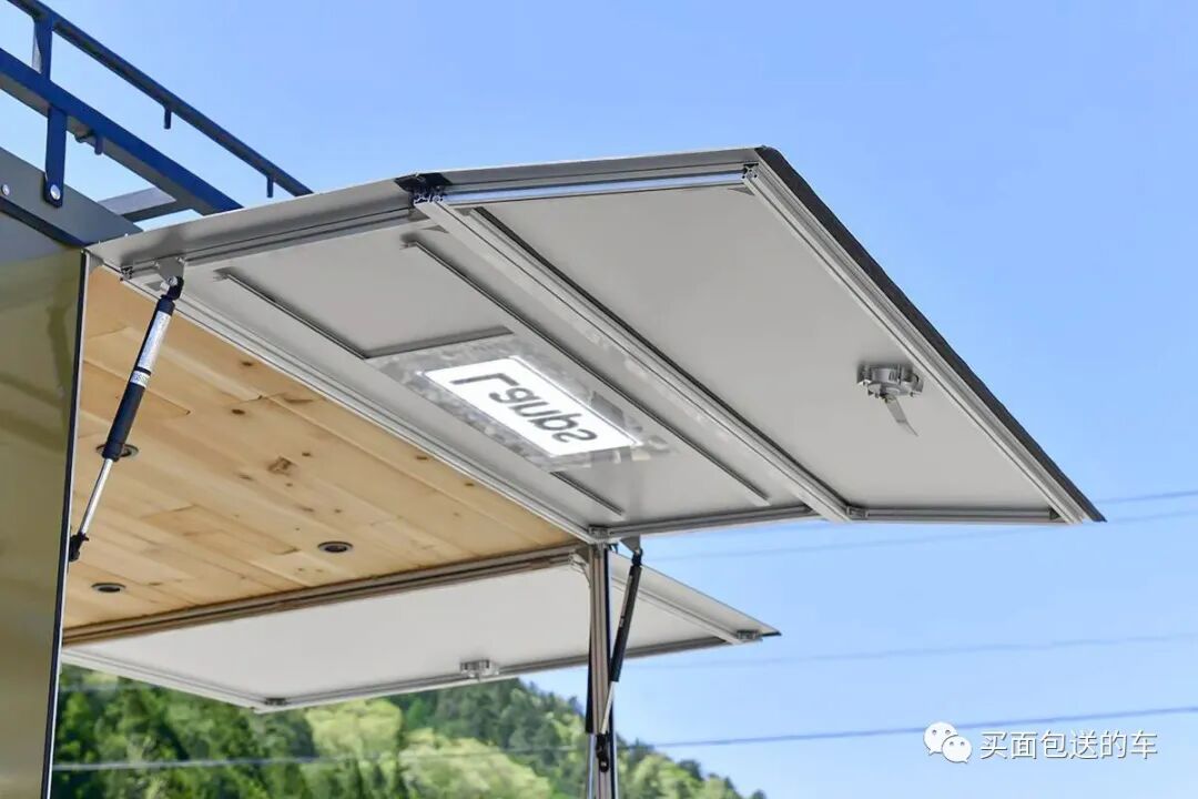 三个侧门板开启后作为一个小天幕使用,有种国内移动商贩车的既视感。