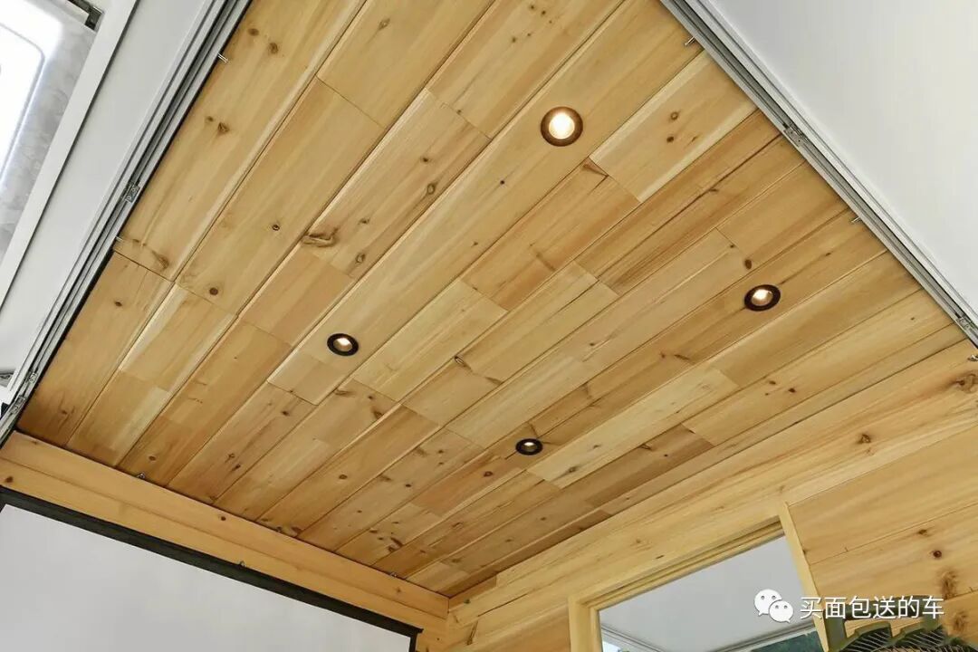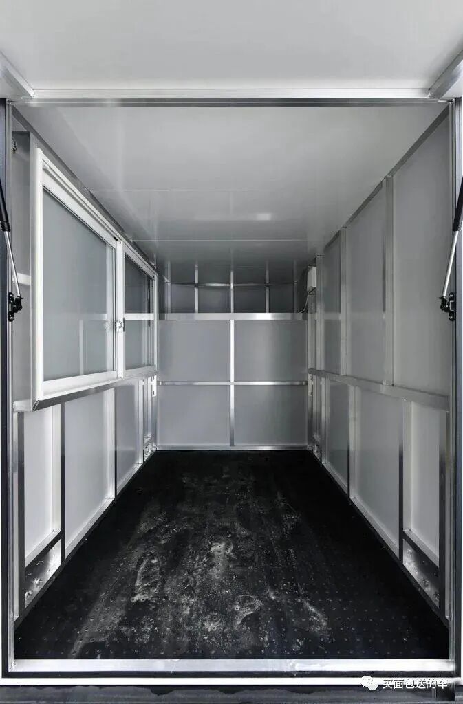 为了装饰和保温需要,箱体内部加装了桑拿板,货箱内侧也加了EVA保护垫。