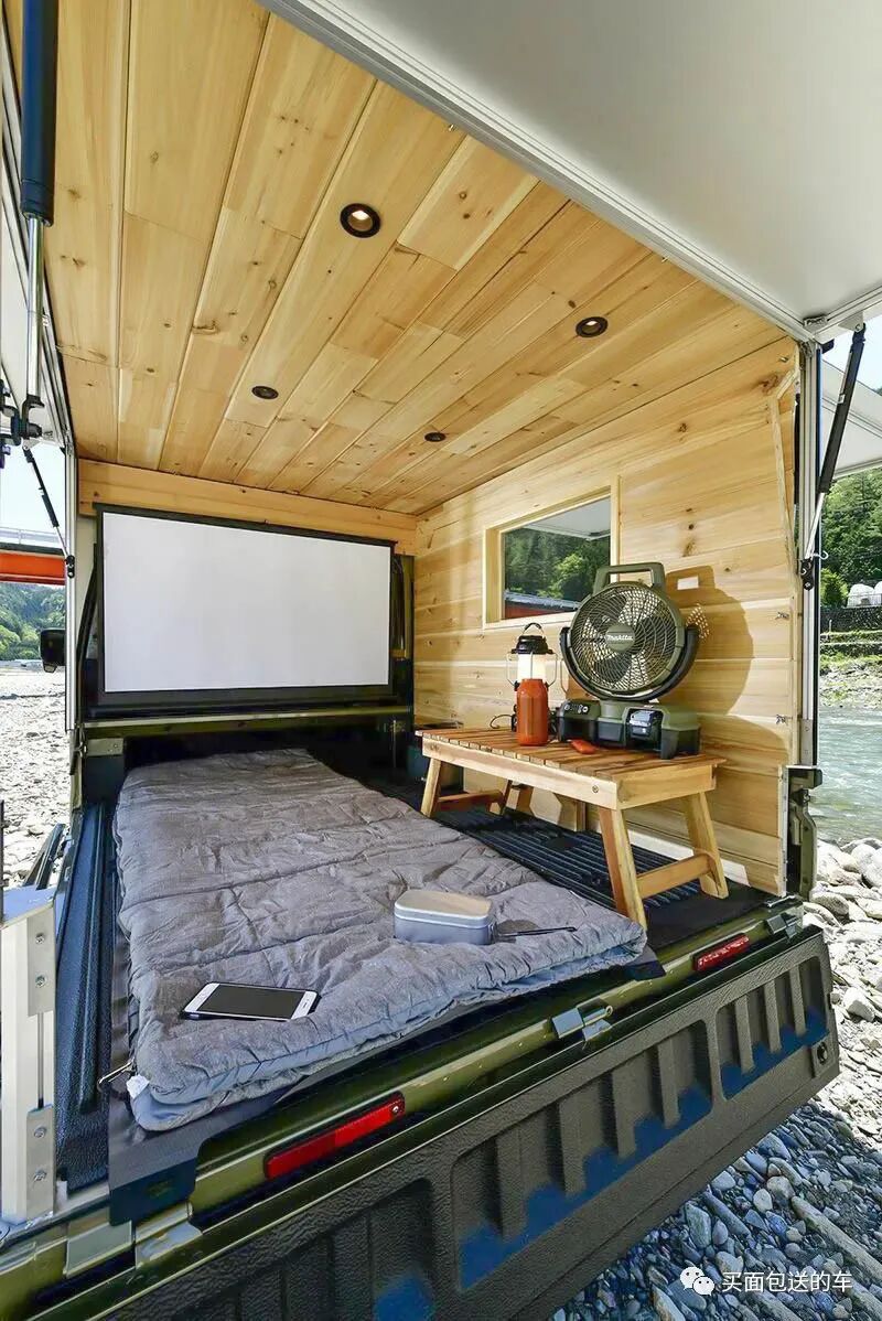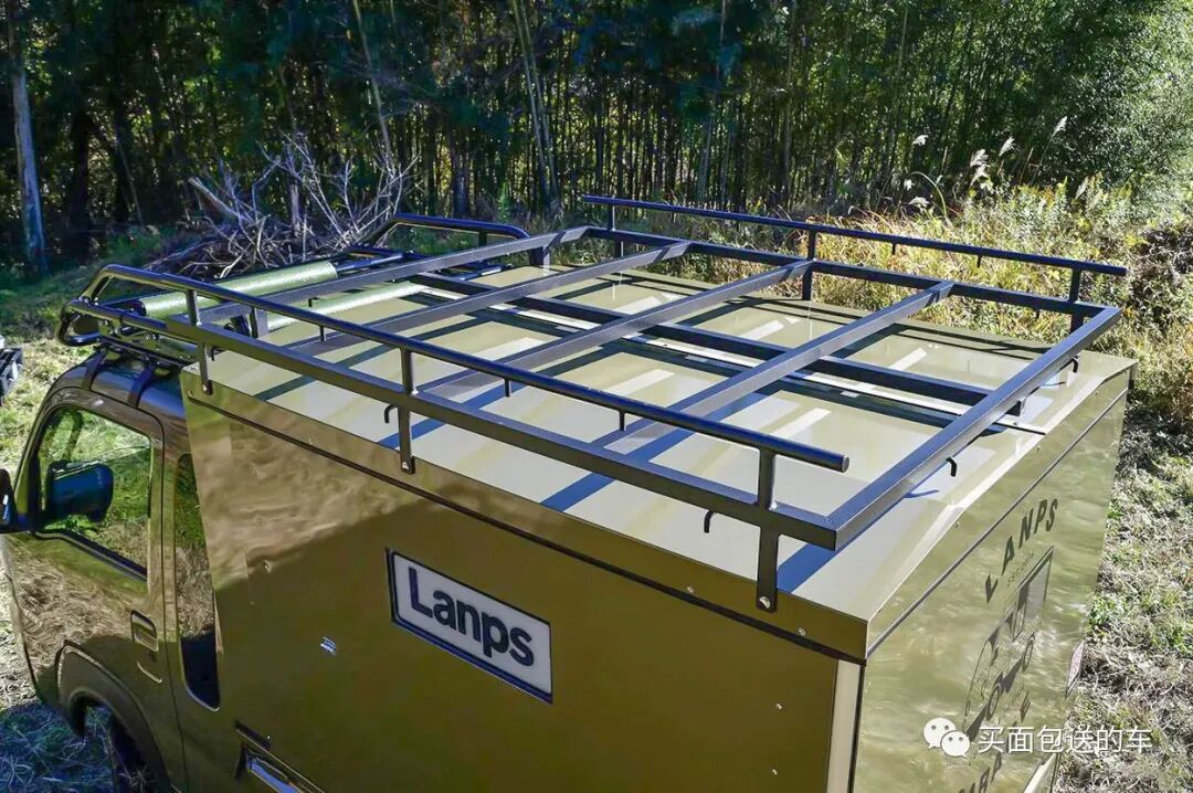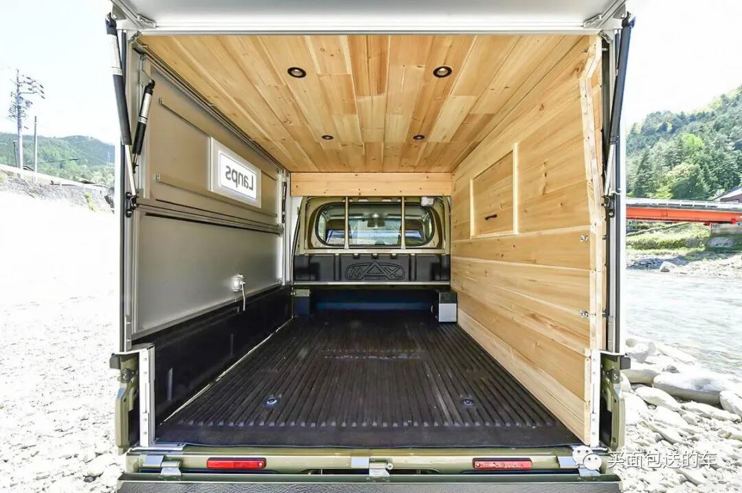 侧开门板作为露营的天幕,也提高了大尺寸货物装卸的效率,比起固定而封闭的板箱式房车,LANPS可以携带很多户外装备,而又可以作为休息的卧室。