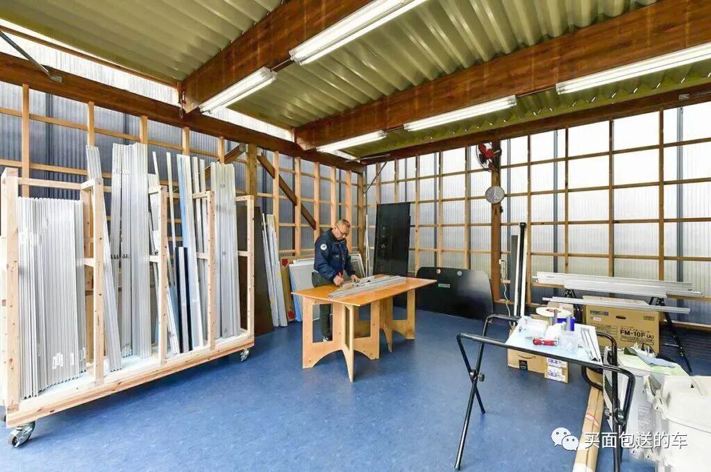工业型材适合手工搭建大尺寸结构零件,配合轻质的铝塑复合作为封面材料 ,房体有很高的空间利用率。