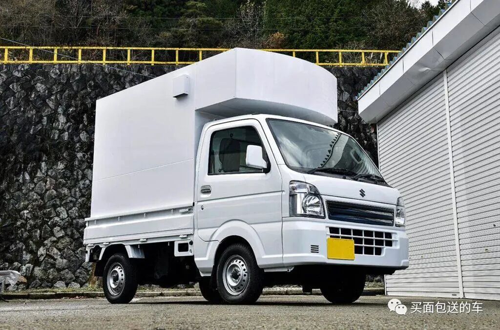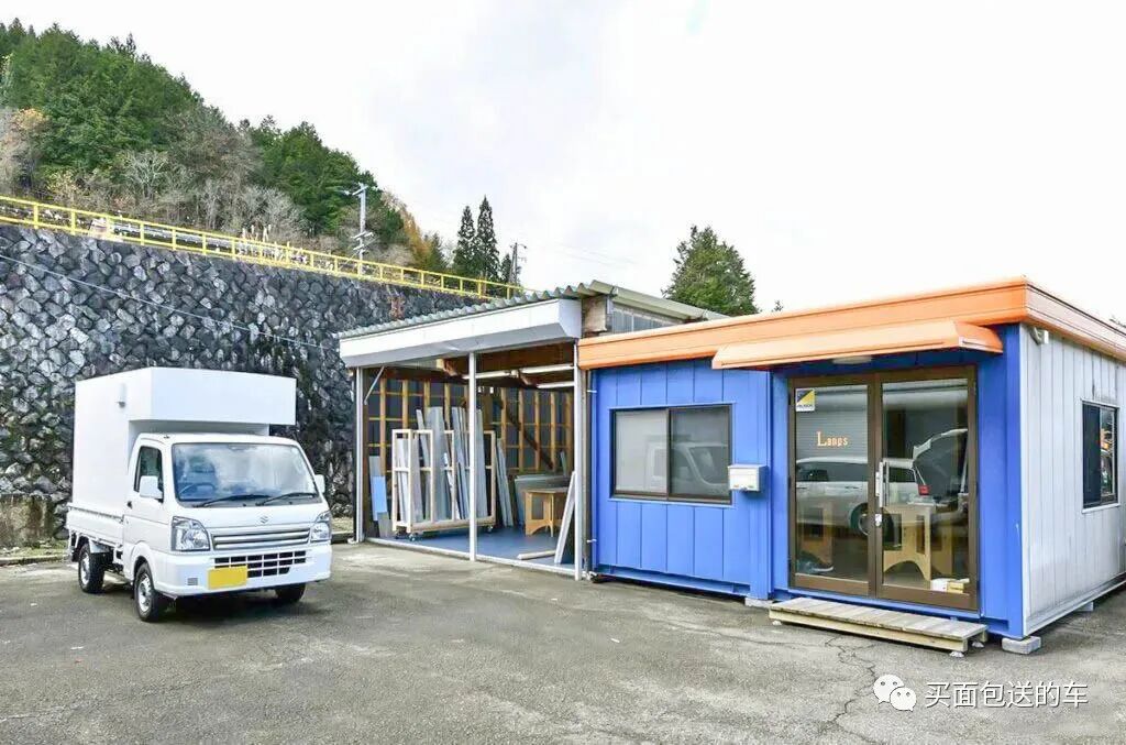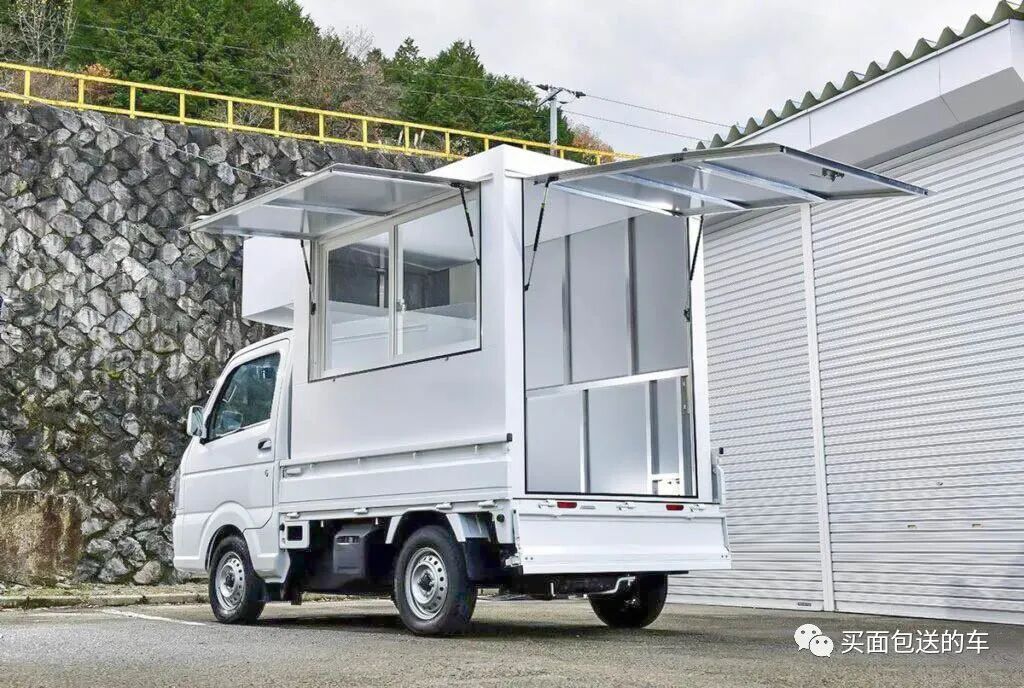 在铃木CARRY 轻卡上,小林先生用型材和铝塑板制作了整体装载的板箱式房体,装载在尾货箱后的外尺寸符合轻自动的道路交通规范,板箱式房体是作为货箱上的货物而存在的,所以这不属于改装车。