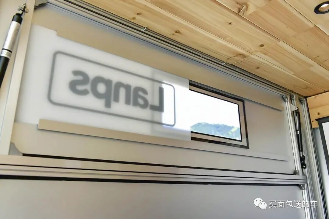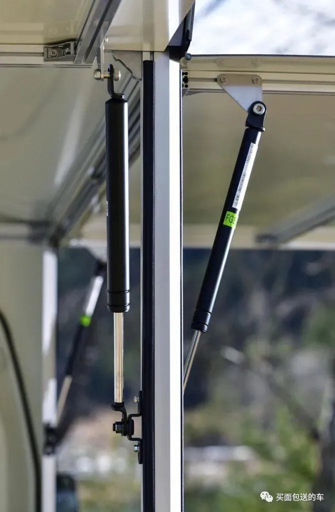 用液压撑杆和滑轨制作的侧窗。
