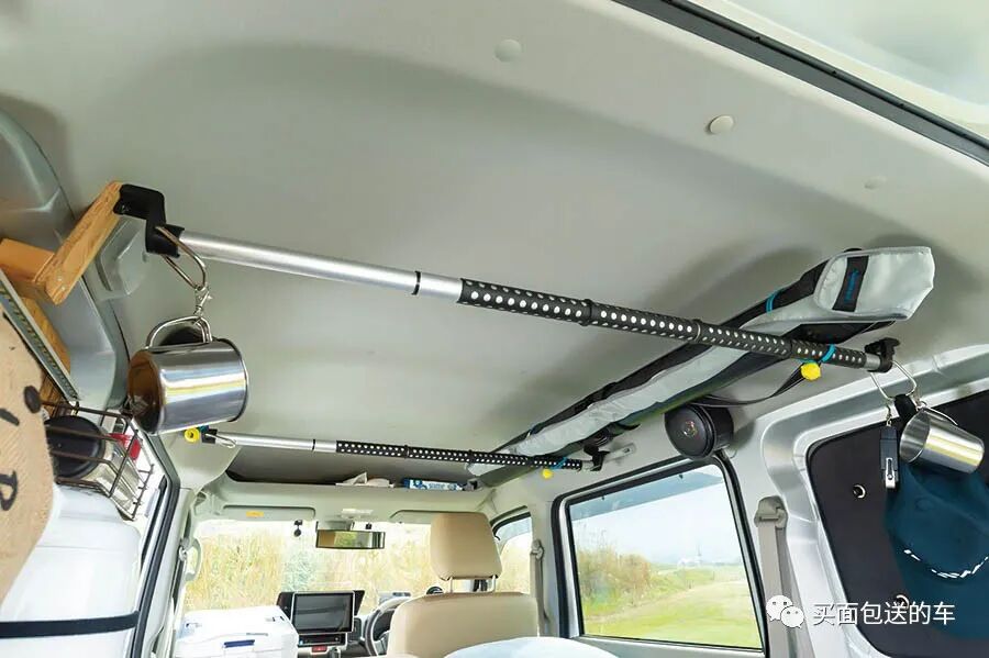 车顶的顶杆用来收纳长尺寸的渔杆。