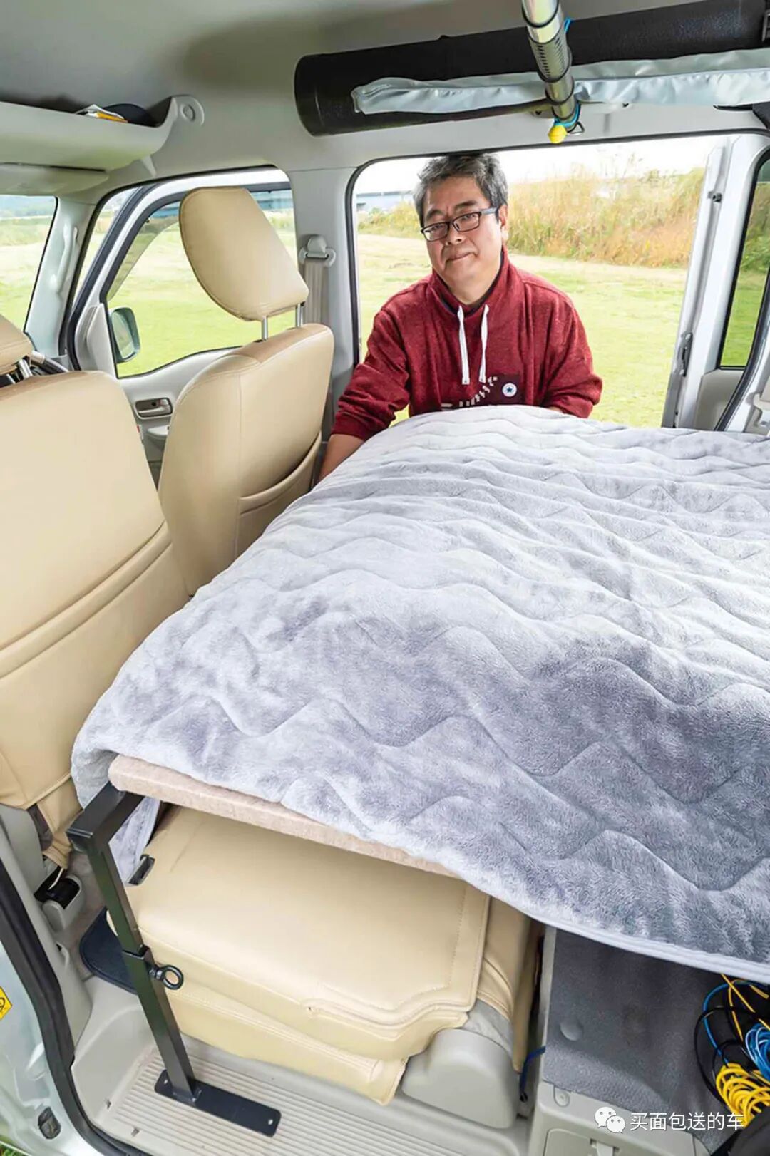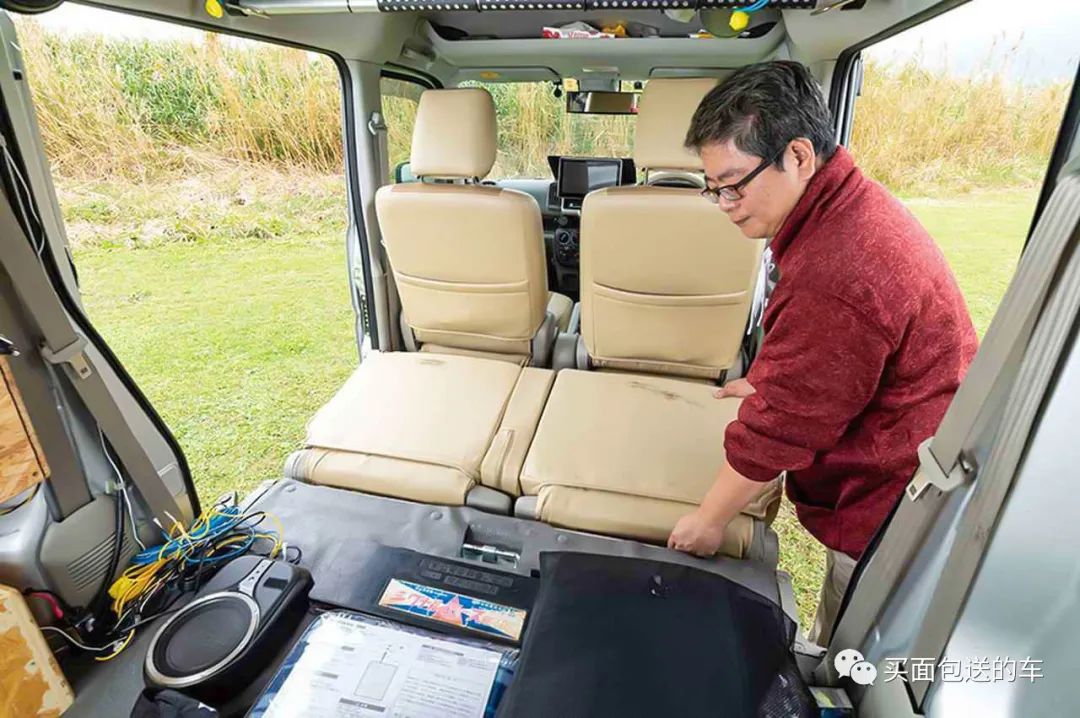 2016年款式铃木浪迪EVERY (底盘代号 DA17V) ,在同级别的车型中,拥有最大的车内空间,配件和售后都很实惠,荻原先生对外观和原车配置没有大改动,只是为了车中泊和钓鱼活动对驾驶内的第二排和第三排进行了改装。