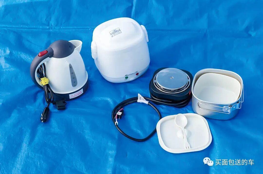 为了驻车加热食物而采用的12V低压电器,包括烧水器,电饭煲和加热饭盒(完)。