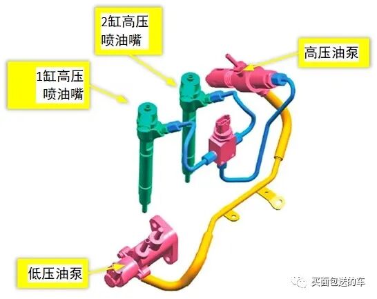 燃油供应系统是菲亚特动力科技 FPT Industrial的 1.3L的MJD柴油共轨系统的简化版。采用低压+高压的两级柴油油泵结构,将原来4个高压喷油嘴简化为2个。