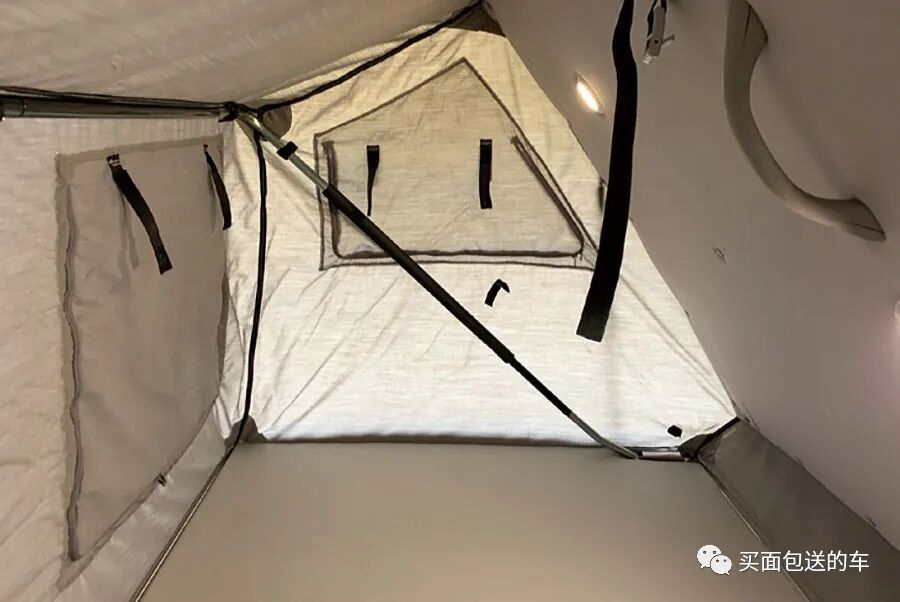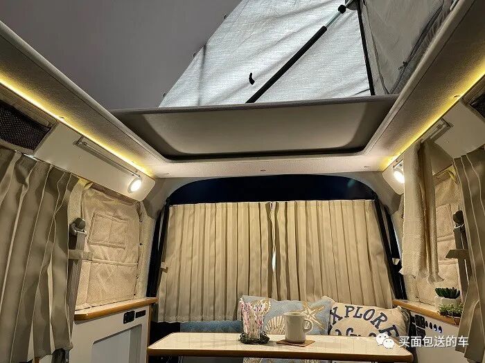 相比在车顶上加装车顶帐篷和三角折叠车顶的方案,侧开车顶能够有效利用车体的纵向空间,让下铺都拥有充裕的卧室空间。