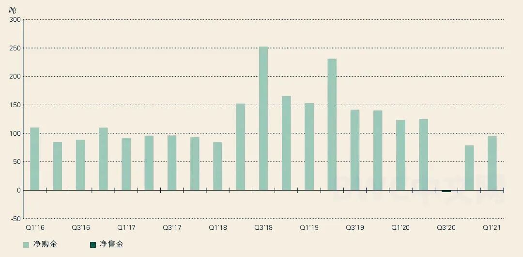 据中国黄金协会一周前前发布数据显示,今年前三个月,国内黄金ETF规模也继续增长,共增持11.5吨。截至4月,ETF持有量约72.4吨,创下历史新高。同时,中国市场黄金类产品的需求也同比大增212%,据世界黄金协会最新报告,一季度全球央行净购买了95.5吨黄金,环比增长20%,并与2016年至2017年之间出现的季度净购金量相当。