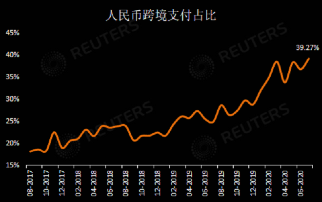 但是现在情况发生了很大变化,据IMF数据,截止2020年12月,美元在全球各国的储备份额占比已经意外地从1999年的高达73%下降到60.2%,且为连续三个季度下降,而人民币占比则进一步升达2%。