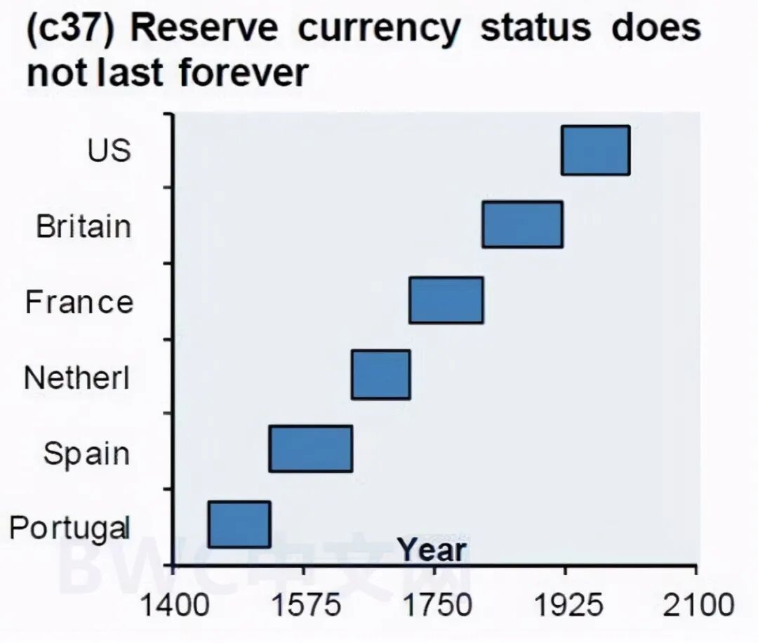 过去半个多世纪以来,美元似乎成为全球经贸的“超级妄想者”。特别是美联储凭借源源不断开启美元印钞机,在炮制出一个又一个美元资产泡沫过程中,美国经济轻松获得全球物质财富的同时,还在不断收割全球货币利差。不过,这一不公平的货币现象并不会长存。通过下图,可以清晰地看到,全球储备货币从来就没有被一种货币独占过。这也是世界经济沧海桑田的趋势。无独有偶,事情有了最新进展。