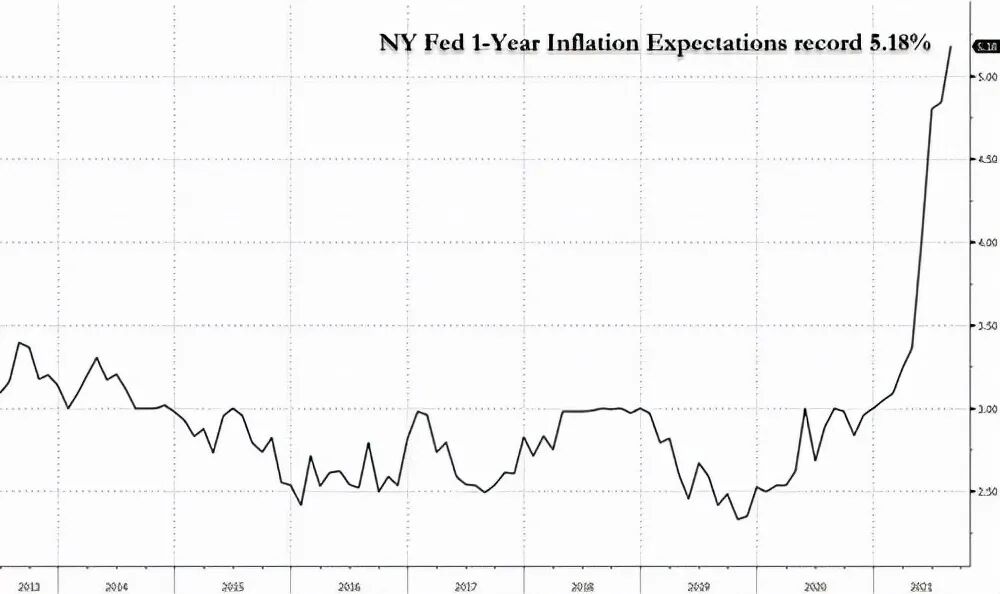 而在此前一天,美联储-纽约联储9月13日发布的最新美国《消费者预期调查》调查显示,美国消费者对未来通货膨胀的担忧继续加剧,对美国未来一年的通胀预期中值升至5.2%,对未来三年的通胀预期中值涨至4%,两项指标均创2013年6月该调查启动以来的历史新高。调查显示,美国消费者预计,几乎所有项目的价格都会上涨。