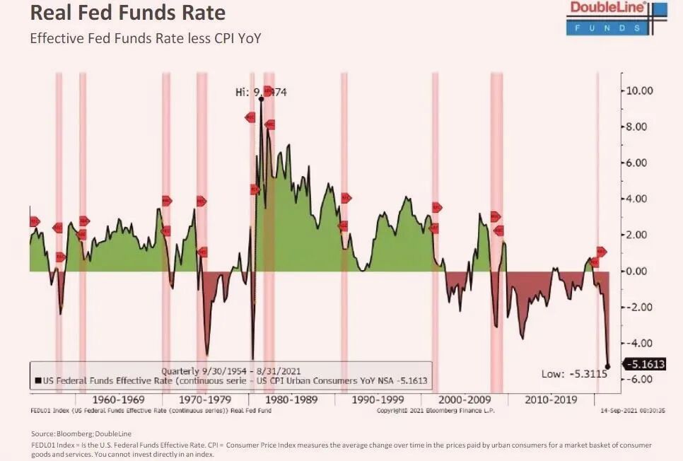 紧接着,受人尊敬的分析师拉塞尔·纳皮尔预测,美国通胀很快将达到6%,将其与10年期美债的1.5%的名义利率相调整,投资者将获得超过负4%的实际收益率(具体数据趋势请参考美联储的实际影子利率)。