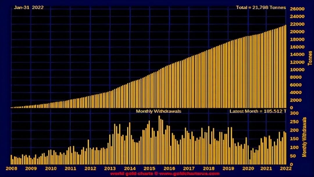 另据海关数据显示,2021年,中国更是大幅增加黄金进口量,数量高达818吨,比2020年增长了120吨,因为,中国已经向相关机构发放了大量黄金进口配额,分析师预计接下去的两年内中国黄金需求会再次上升(具体数据细节请参考下图)。以上这些市场统计数据表明,自2021年以来,至少有1000多 吨 黄金已经分批运抵中国。