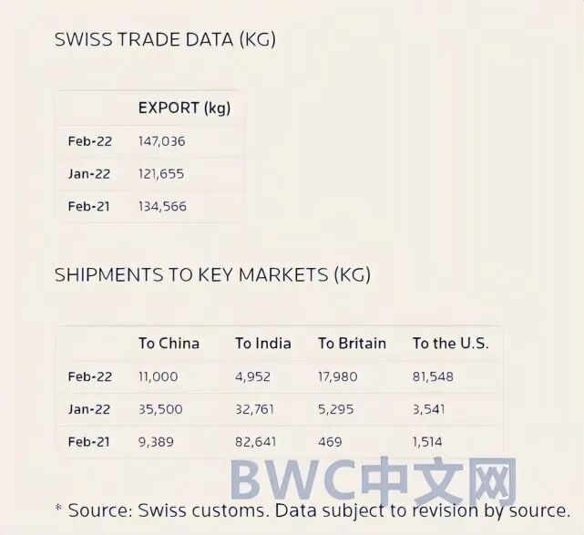路透社一周前报道,全球最大的黄金中转和精炼中心的瑞士在 3月份对美国的黄金出口猛增。瑞士海关数据显示,瑞士3月对美国的黄金出货量飙升至2020 年5月以来的最高水平,原因是美国人囤积了大量的包括金条在内的一系列实物黄金。同时,瑞士对英国的黄金出口也有所增长。
