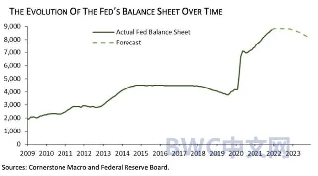 美国金融网站Zerohedge5月4日援引经济学家称, 随着俄外汇储备受到来自美元的限制,说明美元可能会在最需要的时候被拿走。而美元的主导地位是全球金融危机的根本原因。值得注意的是,美联储5月5日宣布加息0.5%的同时,还表示将从6月开始缩表,到9月时美联储将每月减持950亿美元(600亿美元的美国国债和350亿美元的MBS)有分析师预计,美联储的资产负债表可能将会在未来3年最终收缩60%,可能最终累计抛售包括美债在内的5万亿美元,最终可能会降至约为4万亿美元。