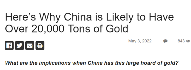 而美媒Silverdoctor5月3日还称, Alasdair Macleod 根据有关分析认为,中国实际积累了超过 20,000吨黄金,比我们知道的数量多很多。此外,国际黄金分析第一人阿拉斯代尔麦克劳德也分析认为,中国在1982到2003年间积累了约2.5万吨黄金,而目前很有可能超过3.1万吨黄金。