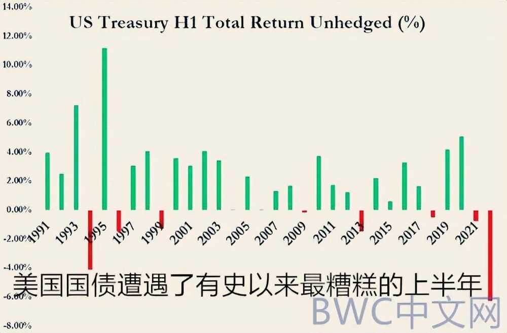 新数据显示,美债在大幅抛售之下,作为全球资产之锚和经济震荡时期传统首选避险资产的10年期美债的收益率已接近3%,道明证券建议做空2年期美债,目标收益率3.4%,德银的报告显示,2022年上半年,十年期美债跌幅超过13%,是1788年以来的最大跌幅,从6月中旬3.5%的十年高点暴跌至7月2日的2.89%,出现教科书般的溃败。