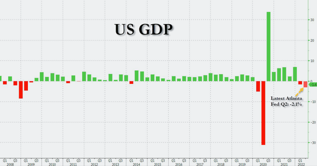 美国经济分析局在上周修订后的更新的美国第一季度GDP数据表明,美国经济面临比最初报告更严重的收缩。2022年第一季度GDP萎缩1.6%,与去年第四季度增长6.9%相比,这是一个令人印象深刻的自由落体式的下降。