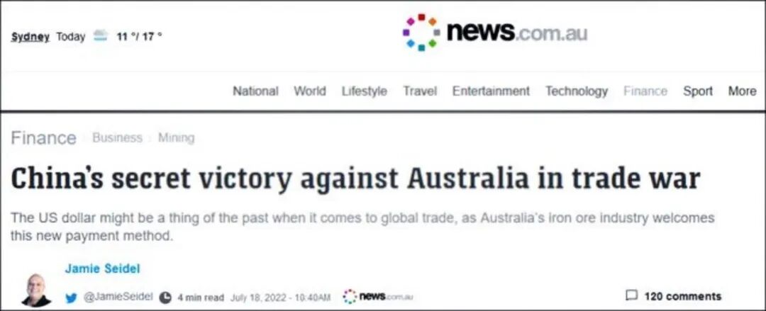 据澳大利亚新闻网在7月18日报道,澳大利亚主动首次使用人民币结算铁矿石,7月10日,澳大利亚矿业公司必和必拓运抵中国港口的铁矿石主动用人民币结算交易,而非美元,正式启动了澳大利亚的现货铁矿石以人民币结算贸易的进程,该外媒称,自从人民币在2016年正式加入IMF特别提款权(SDR)货币篮子以来,人民币在全球贸易结算和国际储备领域中的地位开始不断提升。