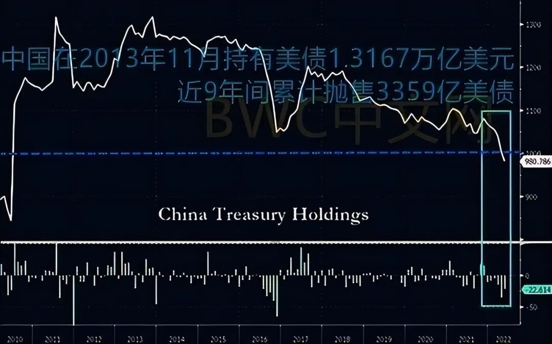 BWC中文网财经团队查询美国财政部的历史数据注意到,中国在2013年11月当时持有美国国债总额达1.3167万亿美元,相当于近9年间,中国累计抛售3359亿美元的美国国债。累计抛售比例高达近26%。而这一累计抛售的规模已经高于美国国债第四大持有国瑞士持有的2941亿美债的总量。