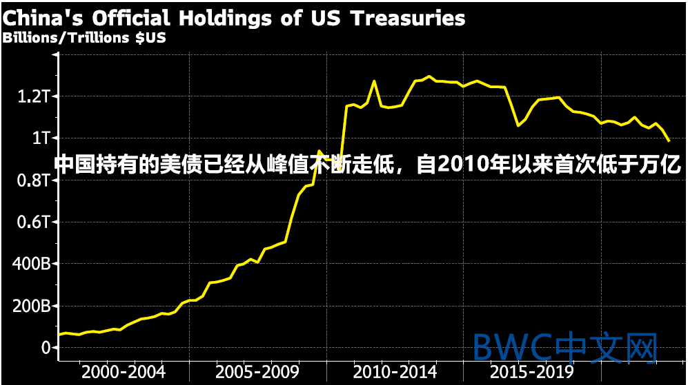 而根据美国财政部7月下旬公布的最新一期国际资本流动报告(该数据延后两个月惯例),最明显的一个新变化是,截至今年5月,中国持有的美债总额自2010年6月以来首次降至1万亿美元以下,至9808亿美元。去年12月以来,中国已经连续6个月抛售了美国国债,累计抛售规模高达1000亿美元。而通过下图,自2013年持有美债超1.31万亿美债的峰值后,近9年间,中国已经累计抛售了规模高达3359亿美元的美国国债。累计抛售比例高达近26%。