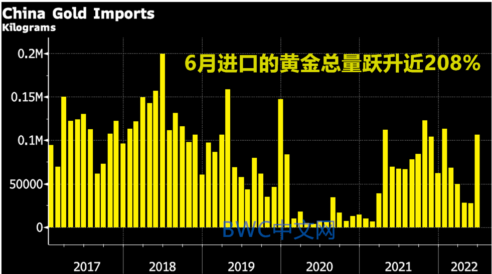 美媒同时称,大多数黄金市场观察家毫不怀疑,中国拥有的黄金数量远高于人们知道的水平。实际上,还一直在增加其黄金持有量。据世界黄金协会最新公布的数据显示,中国在2022年前六个月的黄金总进口量高达326吨,仅6月,通过境外进口的黄金总量就跃升近208%,达到43.6吨。