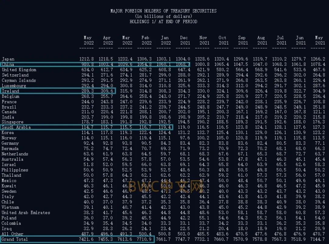 报告数据显示,全球官方机构自今年以来共减持了2372亿美元的美债,比前两个月的总抛售量还要多1.3倍,且为两年以来的最大月度抛售规模,比如,现在不仅作为美国盟友的日本,沙特和以色列在清算美债,还包括中国、卢森堡、瑞士、印度、韩国、澳大利亚等近30个美债主要海外持有者也分别抛售了不同程度的美债。