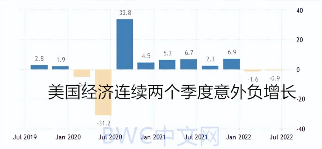 值得注意的是,伴随全球央行连续至少6个月大幅抛售美债,美国经济已经连续两个季度负增长,继一季度萎缩1.6%后,二季度再次萎缩0.9%。美国经济衰退的声音连绵不绝。