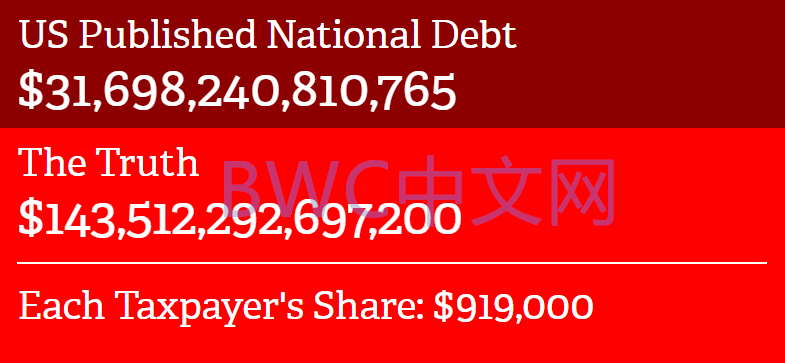 另一个后果是庞大的国家债务 以惊人的速度增长。目前美国的国家债务总额约31万亿美元,但根据美国财务真相网站8月20日最新报道,这只是公开的数字,该美媒称,美国真正的债务总额甚至达到144万亿美元,现在每个纳税人为此背负的债务份额高达 919,000 美元。