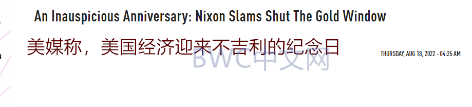美国金融网站零对冲8月18日报道,美国经济迎来一个不吉利的纪念日。51 年前的8月15日,理查德.尼克松突然关闭“黄金窗口”,并消除了金本位制的最后一丝痕迹。