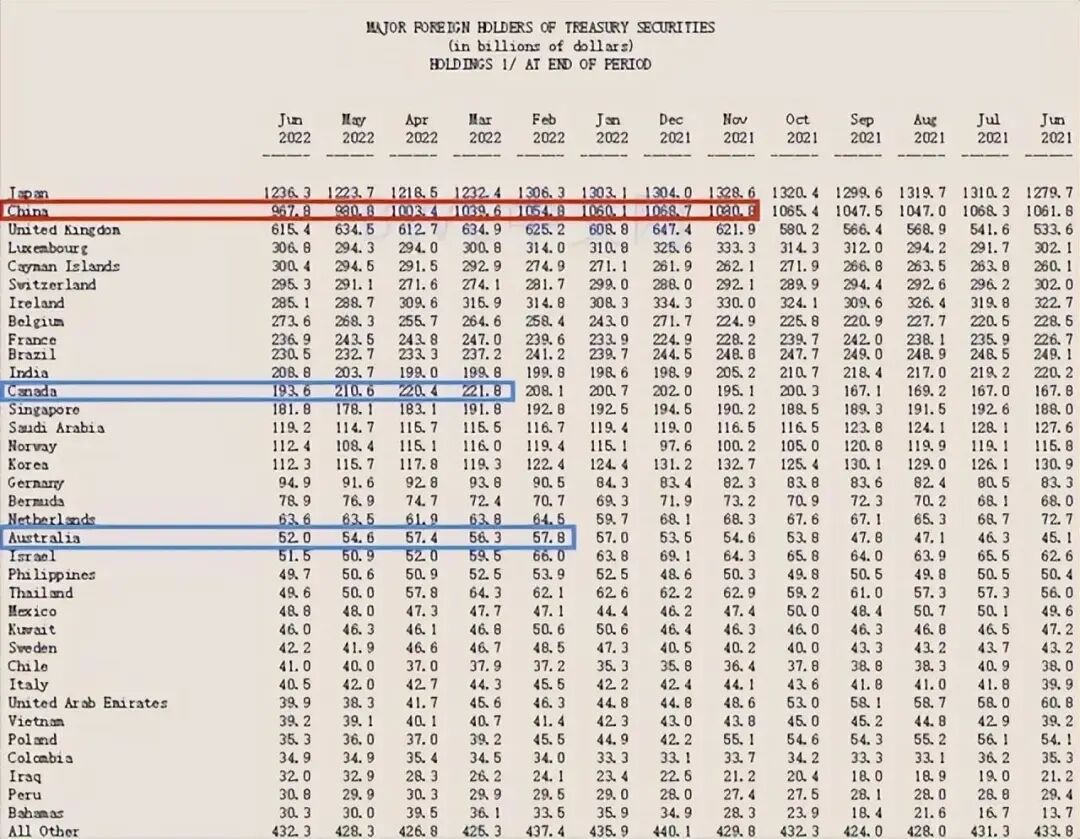 据美国财政部8月份公布的国际资本流动报告显示,虽然,私人投资者对美债需求在增长,但包括全球央行在内的大型美债投资机构已经开始远离或减少持有美债,其中,中国更是从2021年12月开始连续七个月共抛售了达1130亿美债,仓位降至十二年以来的最低值至不足一万亿美元,另外,最大的海外美债持有者日本和第三大美债持有者英国也是在最近半年内共减持了总额高达1540亿的美债,且这个势头还在继续。