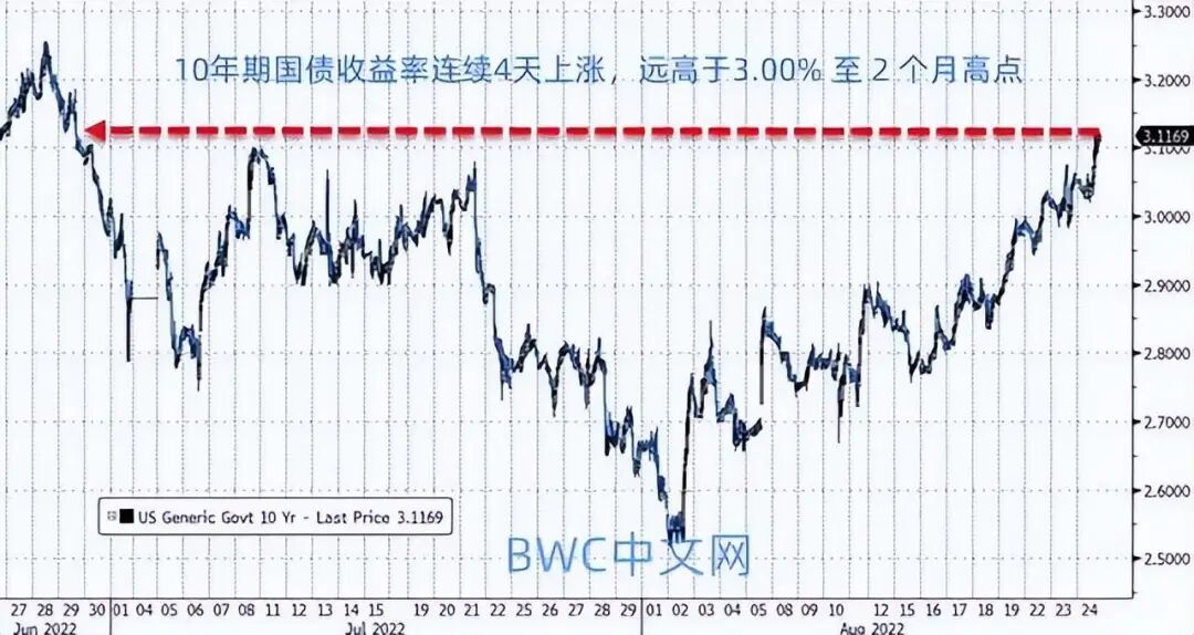 从市场数据来看,美国的借贷成本走高后,已经开始影响华尔街交易员对债券等在内的一系列美国金融资产的押注,在美联储可能会在全球央行年会上释放鹰派激进加息言论的预期下,近一周以来,美债持续四日被投资者猛烈抛售。