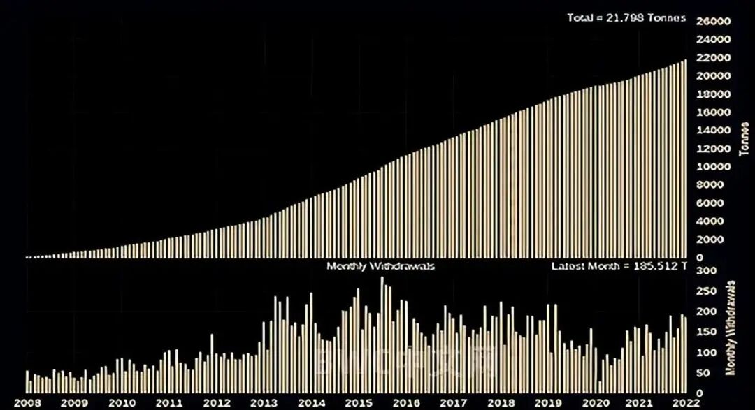 而我们据世界黄金协会公布的数据统计发现,2021年的黄金进口量为818吨,比2020全年的601吨增长36%。