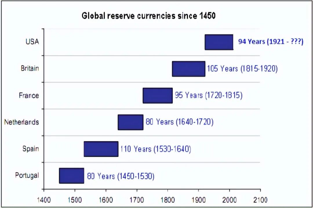 他们知道,美元将失去地位只是时间问题。美元作为新兴经济体的储备货币,美国不断增长的赤字迫使全球央行购买黄金,因为人类的储备货币历史告诉我们,信用货币最终会黯然失色,而黄金却不会。