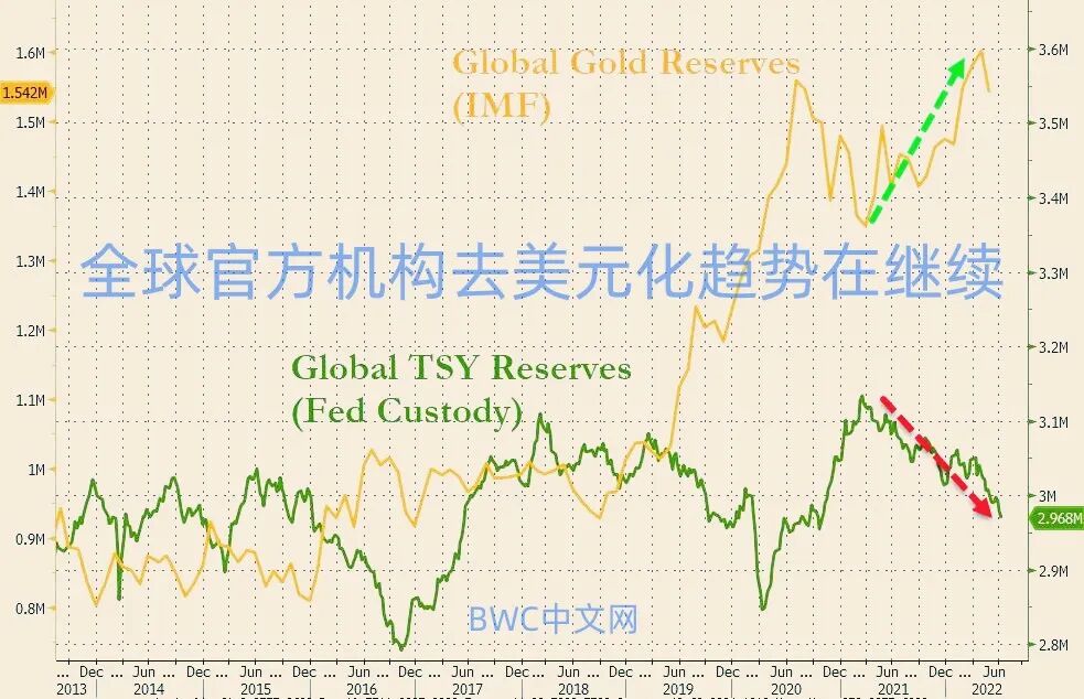 但在过去十年来,世界对美元信任的标签又开始不断被揭去,美元对黄金的价值急剧下降,因为大规模货币宽松不断提振美国货币的供应,虽然美国因高通胀危机不得不开始收紧对信贷的控制,但是,其他央行继续转向黄金,这反映了全球对基于美元货币制度的担忧。