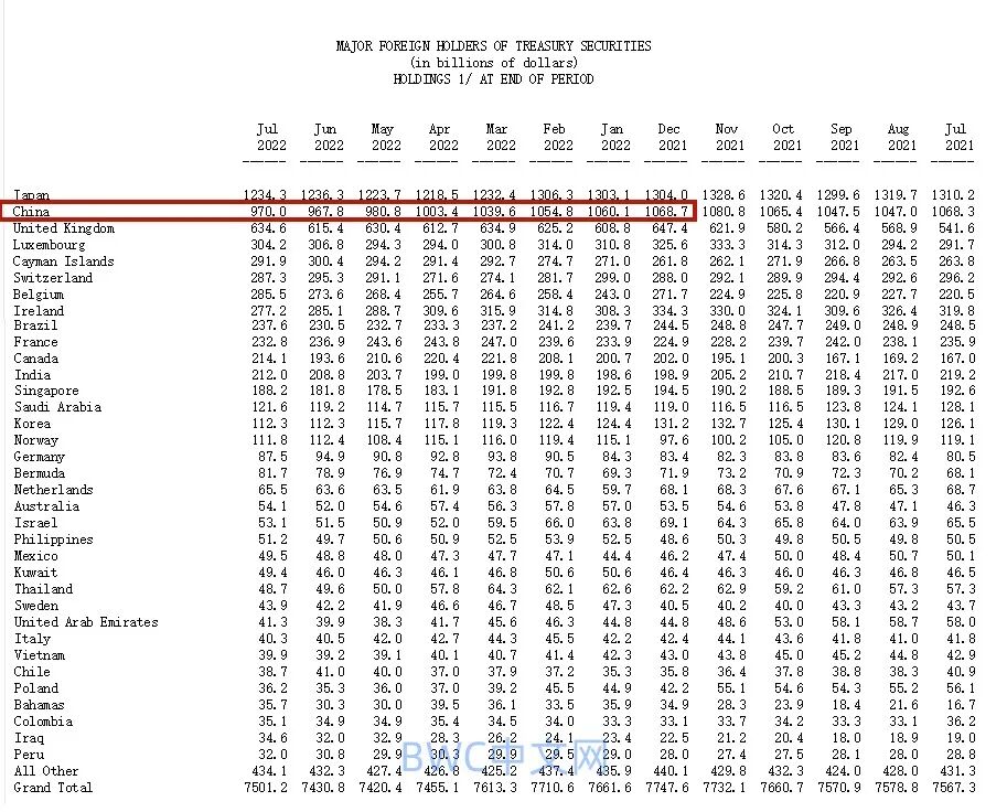 值得注意的是,中国在7月份结束了此前连续七个月抛售美债的状态,小幅增持22亿美债至9700亿美元,且为八个月以来首次,但目前中国所持的美债仓位仍处于自2010年5月的8437亿美元以来的最低水平,目前中国仍为第二大海外美债债主。