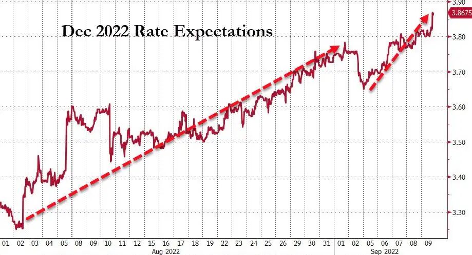 高盛在9月17日预测作为全球资产价格之锚的10年期美债收益率将会在2023年达到4.0%的峰值,与之对应的是,荷兰合作银行表示,美联储在2024年前不会改变鹰派立场,利率可能在5%见顶(之前市场普遍预期为4%,目前值为2.25%)。