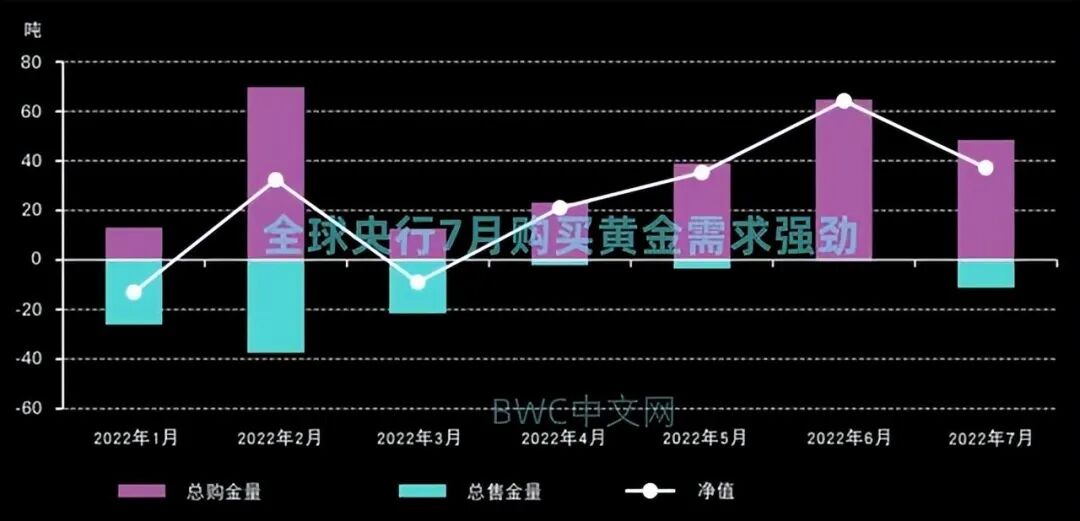 这也使得全球各国央行在2022年截至目前的购买黄金需求共计突破300吨,其中今年二季度,全球央行购买黄金的速度明显加快,比最近五年来和十年来的半年度平均水平分别高出31%和20%,而这背后最大的庄家就是来自新兴市场国家的央行。
