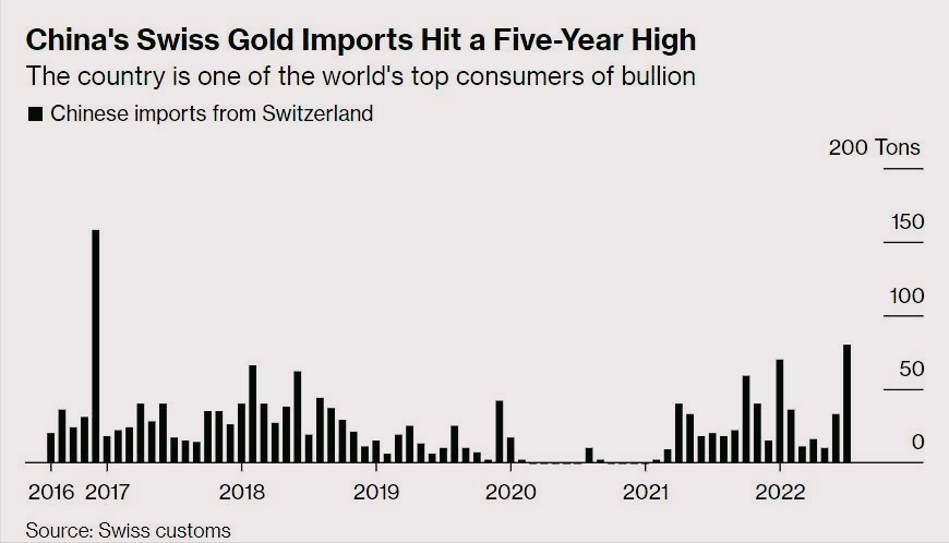 另据世界黄金协会9月28日公布的数据,截至7月,瑞士海关对中国的黄金出口也创下2016年以来的创纪录新高,按月增长意外飙升147%,这也使得2022年至今,瑞士黄金出口量跃升至930吨,而来自中国黄金市场的需求是主要推动力(具体数据细节请参考下图)。