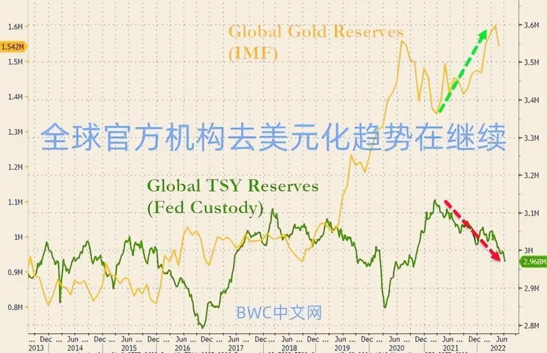 高盛进一步补充称,因为美国通货膨胀肆虐,使得外国央行开始抛售以美元计价的资产,美债相对于替代品的吸引力正在减弱,应该会在未来几个季度中看到外国对美债需求的暴跌,黄金或将在2023年开始扮演“赶超者”的角色。